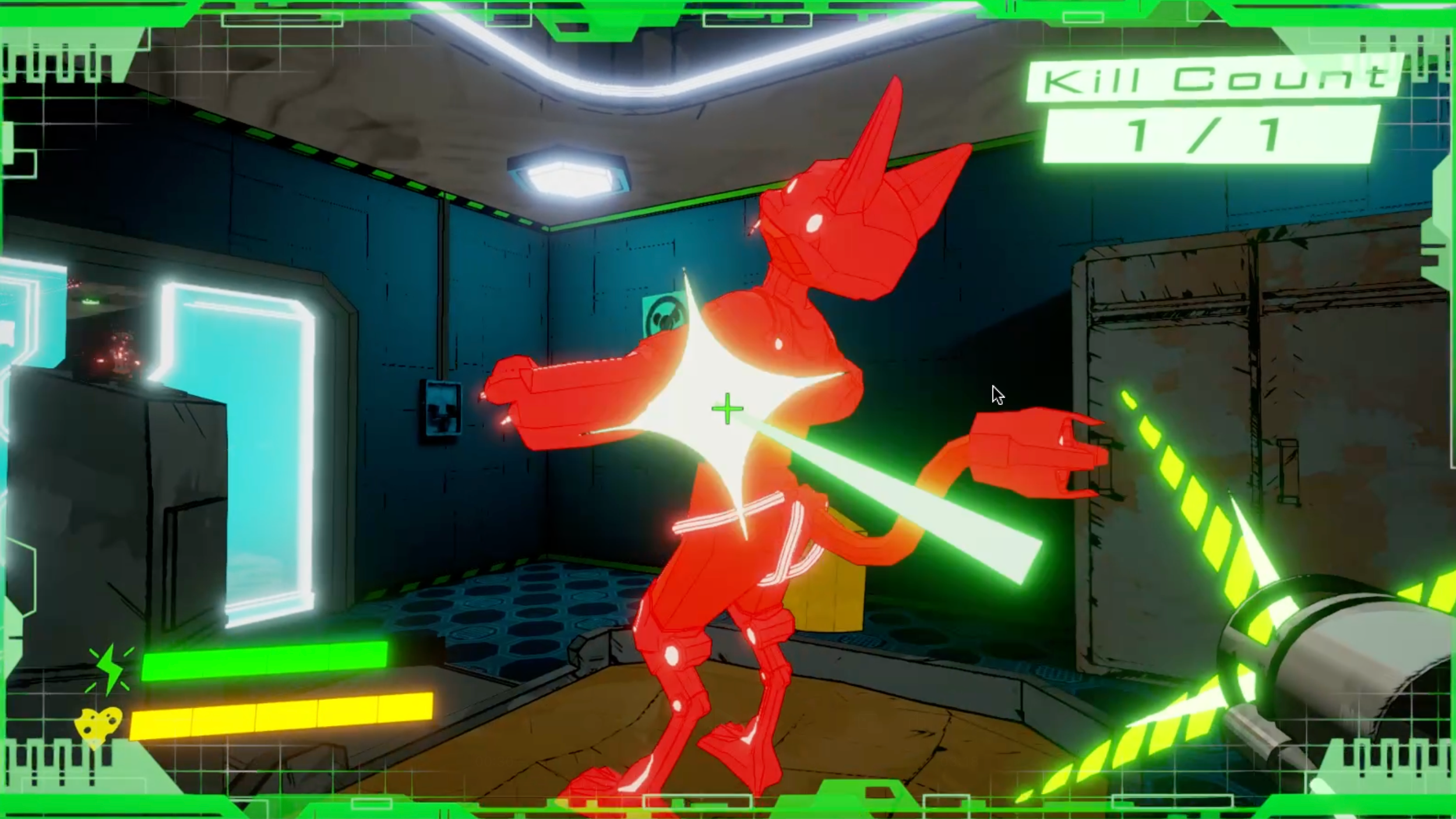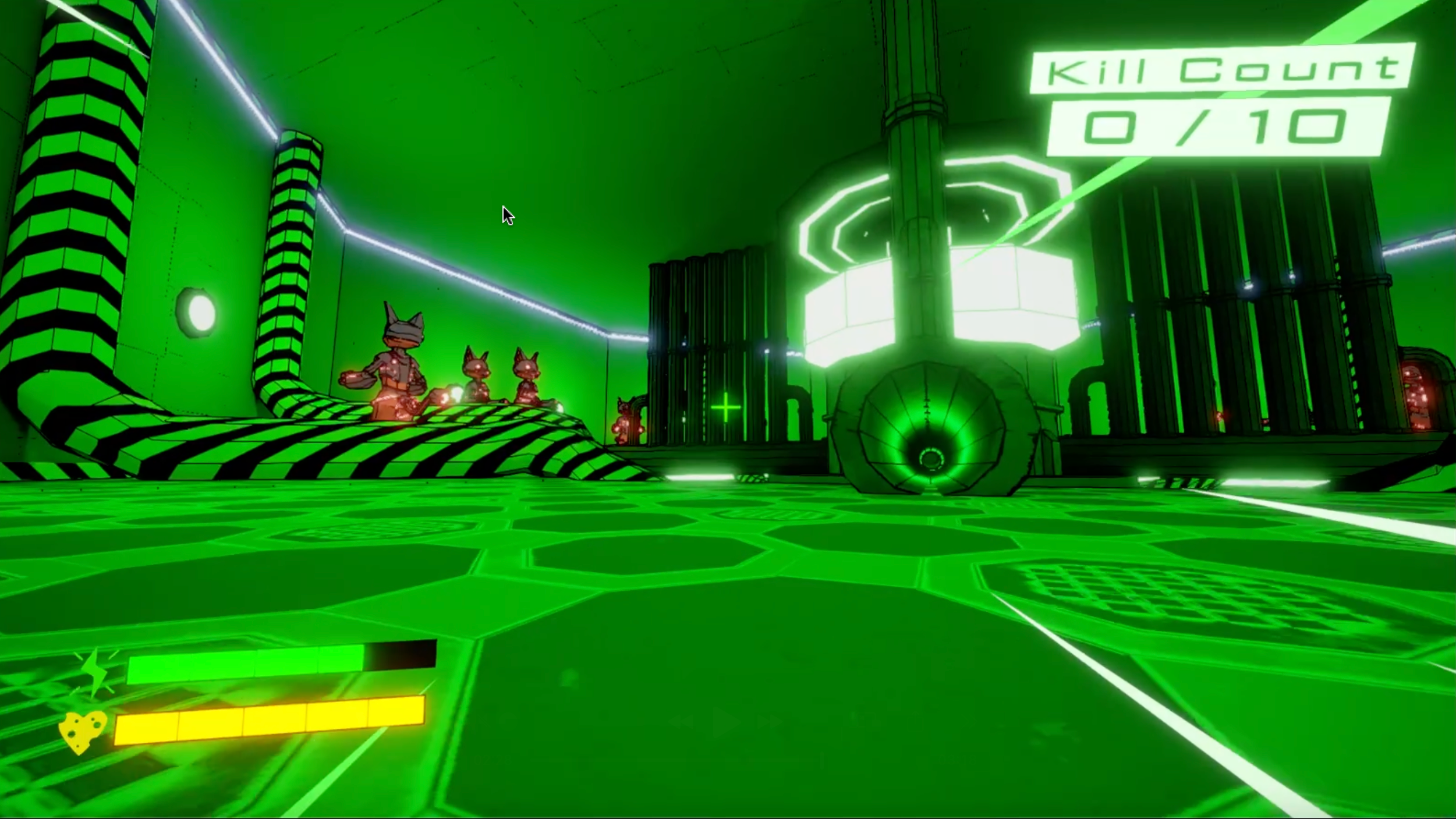 A FPS Action game with a comedic touch. Transform into a cyborg rat and shoot down your enemies in this fast-paced action shooter! With a stylized cyberpunk aesthetic set in space, you fight evil cats for the big cheese moon.